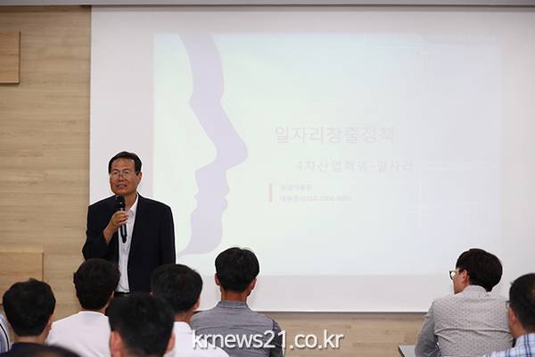 정 총장은 구체적으로 새 정부가 추진하는 일자리 100일 플랜과 일자리 사업 추진방향을 설명하고, 4차 산업혁명에 도래에 따른 일자리 감소 위기를 극복하기 위한 정책방향에 대해 역설했다. 또 현재 광명시가 추진하는 일자리창출 사업의 기반강화와 양질의 일자리를 창출하는 방안을 제안했다.