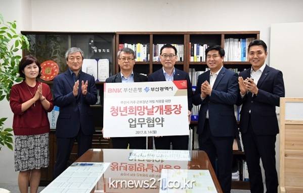 BNK금융그룹 부산은행은 14일 부산시청에서 부산시와 ‘청년희망날개통장’ 업무협약을 체결했다.