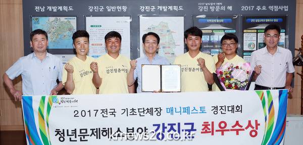 강진원 전남 강진군수가 2017 전국 기초자치단체장 매니페스토(공약) 우수사례 경진대회 ‘청년문제해소분야’에 참가해 최우수상을 수상하는 영예를 안았다.