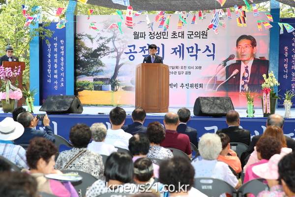 고(故) 정성민 초대 군의원의 지대한 공을 기리고자 공적비 추진위원회(회장 박순남)의 주관으로 농업인과 고(故) 정성민 초대의원 가족 등 500여명이 참석한 가운데 8월 17일 공적비 제막식이 장산면에서 성황리에 개최되었다.