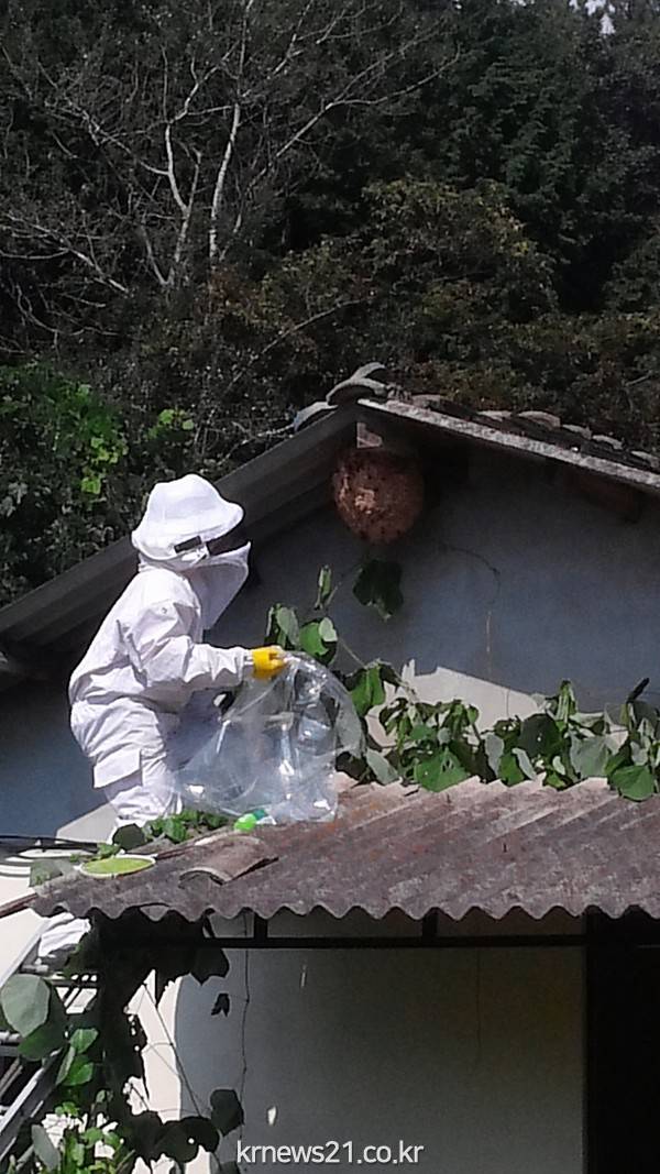 특히 8월 들어 보름여 동안 실적이 1천752건으로 지난 7월 한 달(1천586건)보다 늘었다. 전남지역 소방서별로 하루 10건 정도의 말벌 제거를 처리하고 는 셈이다.