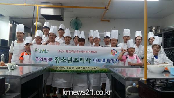 꿈의학교(청소년조리사) 프로그램은 경기도교육청에서 추진하는 학교 밖 교육활동 공모사업으로 안산시가 공모에 참여해 사업비 1천4백만원을 지원 받아 지난 5월부터 11월까지(매주 화?목요일) 진행된다.