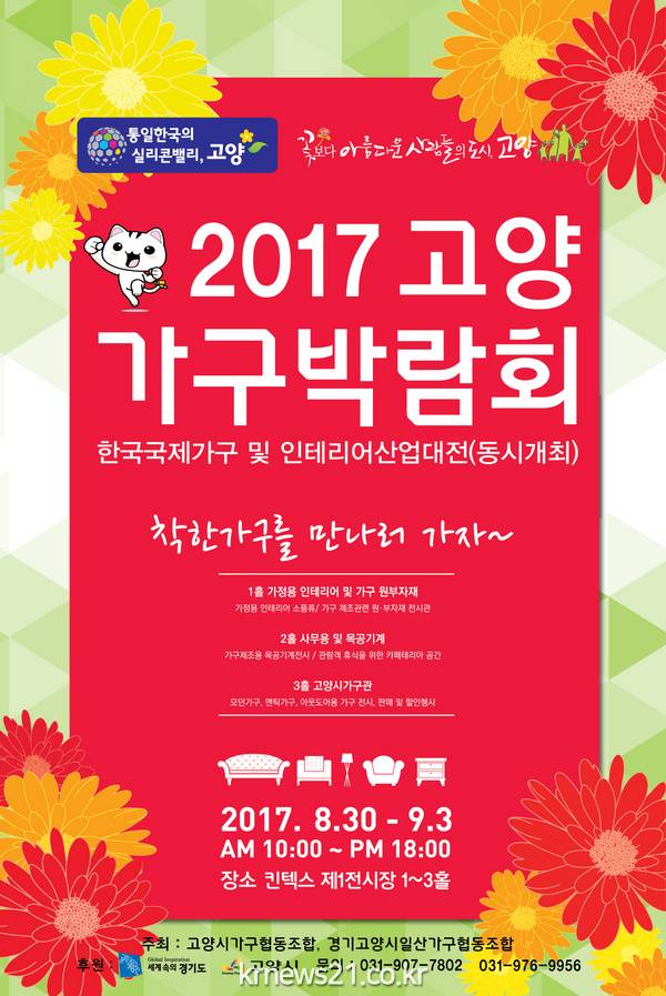 시 관계자는 “고양가구박람회는 고양국제꽃박람회와 더불어 고양시를 대표하는 박람회로 자리매김하고 있다”며 “‘2017 고양가구박람회’를 충실하게 운영해 국내 최대 가구유통단지 이미지를 전국적으로 홍보하고 고양시를 대표하는 산업축제로 발전시켜 나가겠다”고 밝혔다.