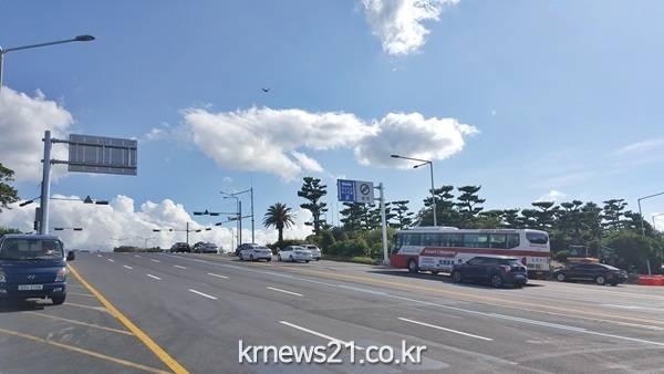 이와 함께 공항에서 버스터미널 방면은 기존 일반 차량 좌회전은 금지되고 마리나호텔 사거리에서 유턴 또는 좌회전해서 운행하는 것으로 변경된다.