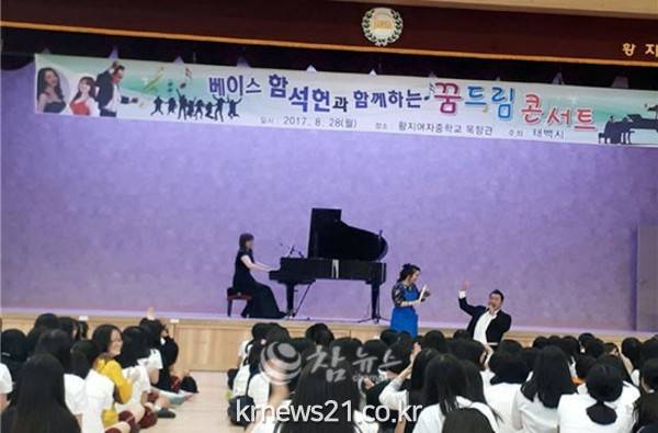 강원 태백시가 지난 28일 황지여중 목향관에서 황지여중 250여 명의 학생과 베이스 함석헌이 함께하는 ‘꿈드림 콘서트’를 개최했다고 29일 밝혔다.