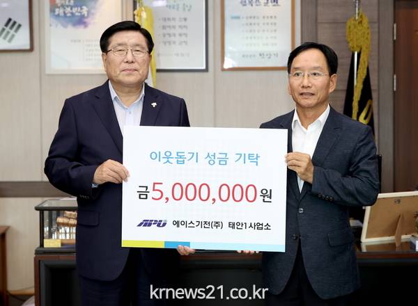 이형주 소장은 “지역에 터 잡은 기업으로서 태안군민들에게 조금이나마 보탬이 되고 싶어 이번 기탁에