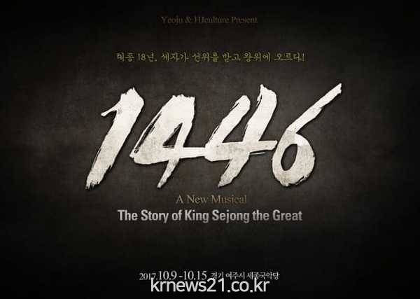 여주시(시장 원경희)는 세종대왕의 일대기를 다룬 뮤지컬 <1446>이 주요 배역의 캐스팅과 창작진을 전격 공개했으며 역사적 최고의 성군인 세종대왕의 삶을 바탕으로 시력을 잃어가는 상황 속에서도 끝까지 한글 창제의 의지를 놓지 않았던 세종의 고뇌에 대해 돌아보고 그렇게까지 한글 창제에 몰두 해야만 했던 이유를 되짚어보며 세종의 일대기를 무대 위에서 펼쳐 낼 예정이다..