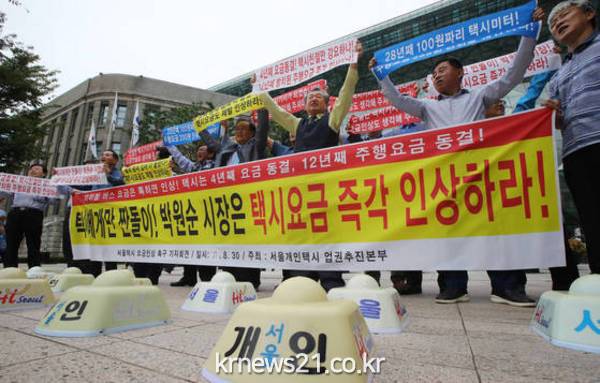 서울개인택시 조합원들이 4년째 동결중인 택시요금 인상을 촉구하고 나섰다.