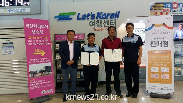 익산시(시장 정헌율)는 한국철도공사 전북본부와 익산시 순환형 시티투어 민간위탁사인 (유)이일관광이 협약을 체결하여 ‘백제와 함께 걷는 슬로우 투어’ 여행 상품을 출시한다고 1일 밝혔다.