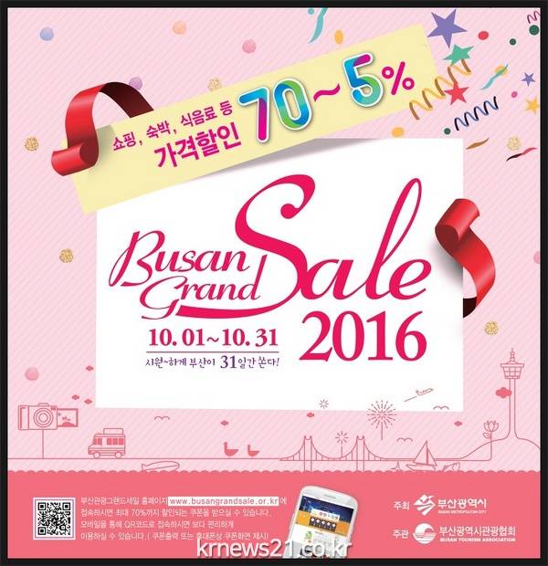 부산시는 관광쇼핑축제 ‘2017 부산관광그랜드세일’을 오는 30일까지 해운대와 남포동·광안리 등 시내 전역에서 실시한다고 5일 밝혔다.