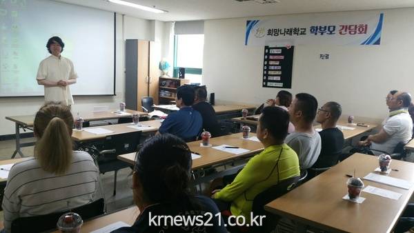 이번 간담회는 학부모들에게 현재 학교생활 프로그램 및 희망나래학교, 예비학교의 입학 절차와 상급학교 진학, 편입학 등 학사관련 정보를 안내하고, 질의응답 시간을 통해 자녀들의 학교생활 등에 대한 궁금증을 해결하는 시간을 가졌다.