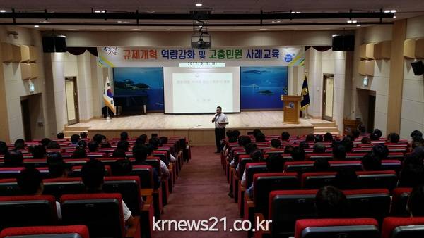 이날교육은 국무조정실 임택진 규제신문고과장을 강사로 초빙해 “규제개혁과 지방공무원의 역할”이란 주제로 규제개선에 대한 현장사례를 중심으로 진행됐다.