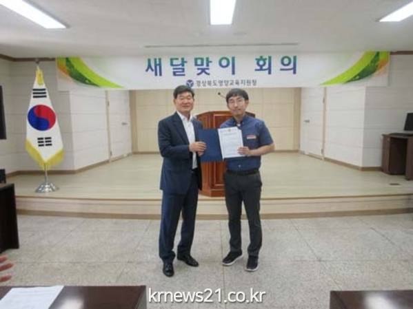 경상북도영양교육지원청(교육장 박상호)은 2017. 9. 4.(월) 고객중심의 행정서비스를 제공하고 고객만족도 향상을 위하여 2017년 3분기 친절공무원으로 김대년 주무관을 선정하였다.