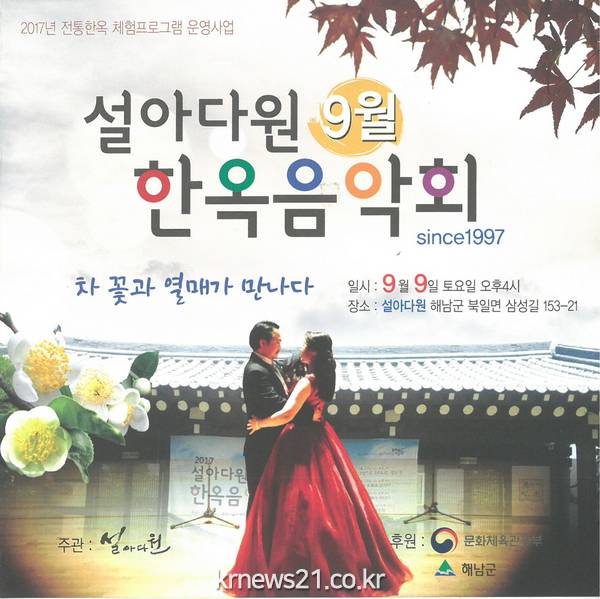 땅끝마을 녹차밭 설아다원에서 한옥음악회가 열린다.