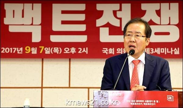 홍 대표는 또 도널드 트럼프 미국 대통령이 아베 신조 일본 총리에게 ‘한국은 대북 대화를 구걸하는 거지 같다’고 말했다는 보도를 거론하며 “문재인 패싱이 아니라 디스카드(Discard·버리다), 문재인 카드를 버리는 것 아니냐는 느낌이 올 정도로 한미동맹의 근간이 무너지고 있다”고 강조했다.