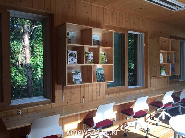 전라남도산림자원연구소(소장 오송귀) 완도수목원이 다양한 연령층의 관람객들을 위해 숲속쉼터를 문화공간으로 조성, 숲속 작은 도서관 ‘책카페 쉼터’를 11일부터 본격 운영한다.
