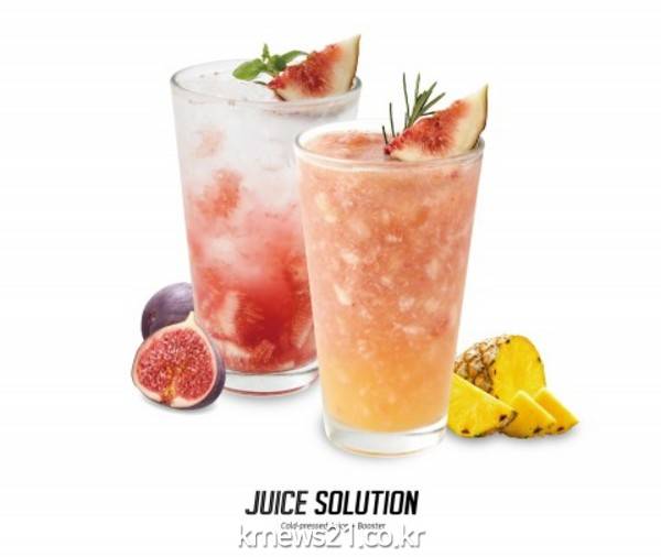 무화과는 1년중 생과일로 즐길 수 있는 기간이 얼마 되지 않는 귀한 과일로, 고급스러운 단맛과 톡톡 씹히는 식감이 특징이다. 주스솔루션에서는 이 맘 때 가장 좋은 맛을 내는 생무화과를 활용해 무화과 특유의 향과 식감을 그대로 살린 ‘무화과 스파클링 주스’와 ‘무화과 파인주스’를 내놨다.