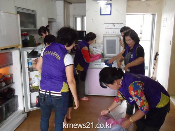 하루 전 10일에는 운남동 새마을협의회(회장 이영옥)가 뇌병변 장애인 이웃을 찾아 청소와 빨래, 정리 수납을 했다.