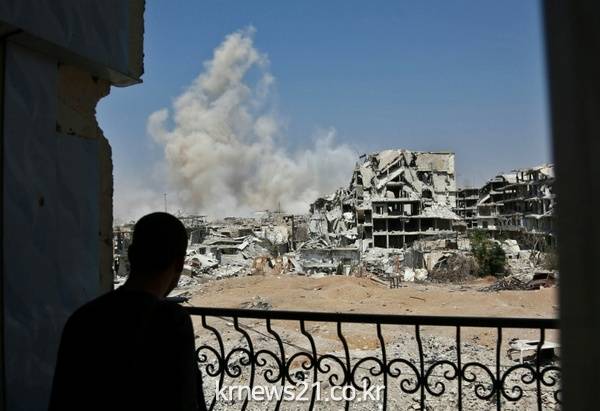 시리아, 공습으로 일어나는 연기