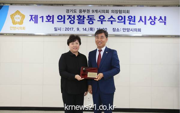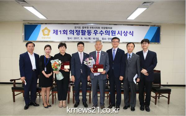 부천시의회 이진연, 이상열 의원이 지난 14일 오후 4시 안양시의회 소회의실에서 개최된「경기도 중부권 9개시의회 의장협의회 의정활동 우수의원 시상식」에서 최우수 의원 수상의 영예를 안았다.