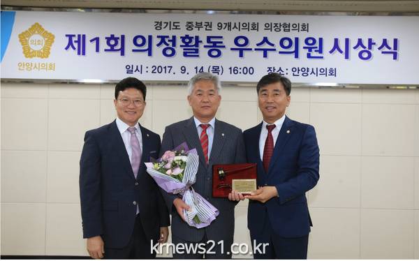경기도 중부권 9개시의회 협의회 주최로 열린 이날 시상식은 주민참여 소통분야 등 9개 분야별로 모범적인 의정활동을 펼친 의원 18명을 선정, 시상했다.