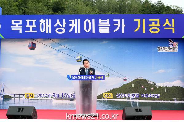 목포시는 15일 신안비치호텔 야외주차장에서 박홍률 목포시장, 박지원 국회의원, 조성오 시의회 의장, 시·도의원, (주)목포해상케이블카 김성운 대표이사, 시민 등 1천6백여명이 참석한 가운데 기공식을 개최하고 해상케이블카 설치 사업의 본격적인 시작을 알렸다.