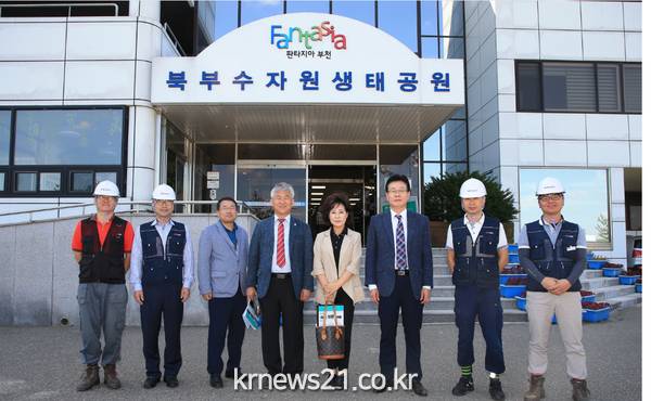 오후 2시에는 남부수자원생태공원 내 역곡공공하수처리장을 방문해 증설공사 사업 완료 현황을 보고받고, 현장을 견학했다.