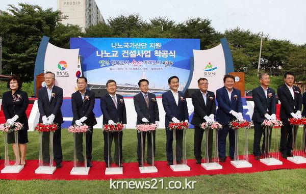밀양의 숙원사업인 나노융합국가산업단지가 올해 6월 최종 승인된 후 3개월여 만인 지난 15일 '나노국가산단 지원 나노교 건설사업 착공식'이 열렸다.
