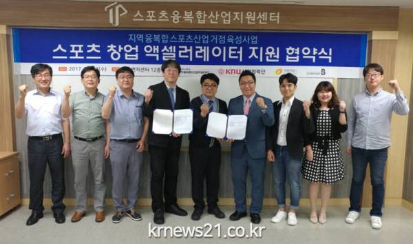 대구테크노파크(이하 대구TP) 스포츠융복합산업지원센터는 지난 13일 '2017년 스포츠 창업 액셀러레이터 지원사업'의 주관 기관으로 최종 선정된 경북대학교 컨소시엄(경북대학교 스타트업지원센터, 빅뱅엔젤스㈜, 컴퍼니비㈜)과 협약을 체결했다.