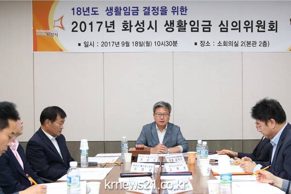 화성시가 2018년도 생활임금 시급을 올해보다 1,320원 높은 9,390원(시급)으로 결정했다."고 밝혔다.