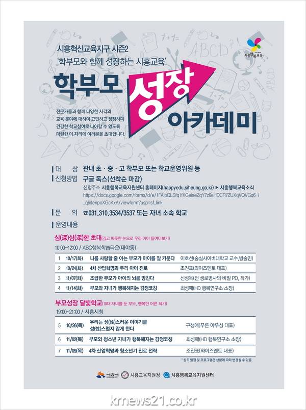 시흥시(시장 김윤식)는 10월 17일부터 <2017 </span>학부모 성장 아카데미>를 운영한다.