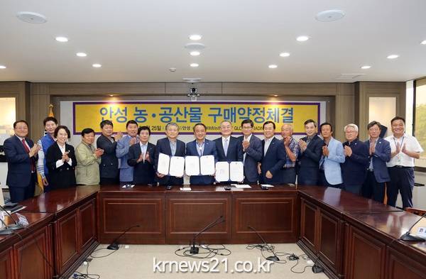 9월25일 황은성 안성시장, 권혁진 시의회의장, SSM 신종철 대표, 안성마춤 농협 대표 등이 참석한가운데 안성시, SSM GLOBAL TRADING(이하SSM)와 안성마춤농협 간 안성 농공산품 구매약정 체결식을 가졌다.