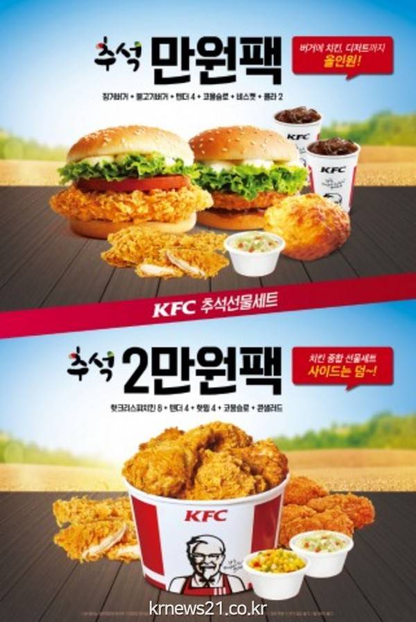 글로벌 No.1 오리지널 치킨 전문 브랜드 KFC가 추석 황금연휴를 맞아 29일부터 10월 10일까지 KFC의 대표적인 버거 및 치킨 메뉴로 푸짐하게 구성된 ‘추석팩’ 프로모션을 실시한다.