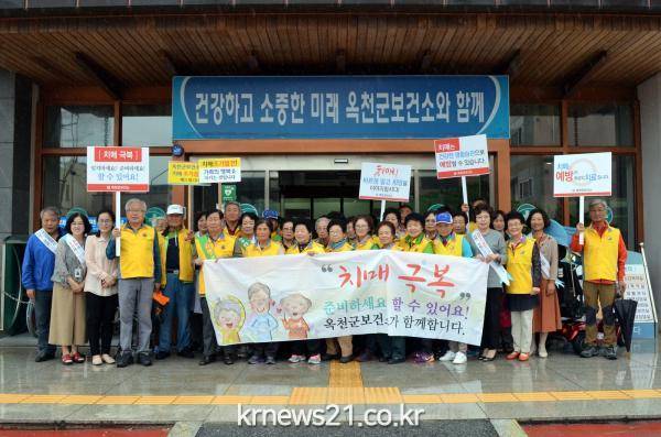 옥천군보건소는 '치매 안심 행복 옥천' 만들기 사업의 일환으로 치매에 대한 주민 관심도를 높이기 위해 작품 전시회 및 거리 캠페인을 28일 실시했다.