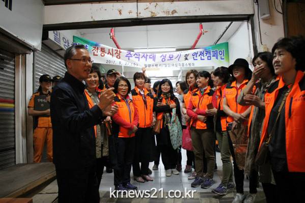 밀양소방서(서장 최만우)는 27일 밀양전통시장 일대에서 밀양시의원 , 소방공무원, 의용소방대 등 50여명이 참여한 가운데 추석 차례상 장보기 및 캠페인을 실시했다.