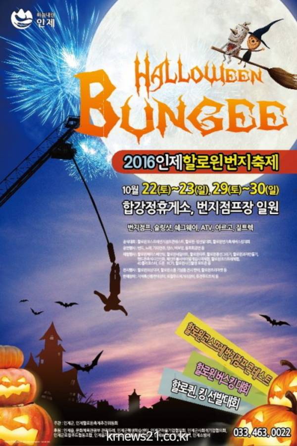 인제할로윈축제추진위원회는 ‘테디베어와 함께하는 2017인제할로윈번지축제’를 10월 21, 22일 이틀간 강원도 인제 합강정 휴게소와 번지 점프장 일원에서 개최한다고 28일 밝혔다.