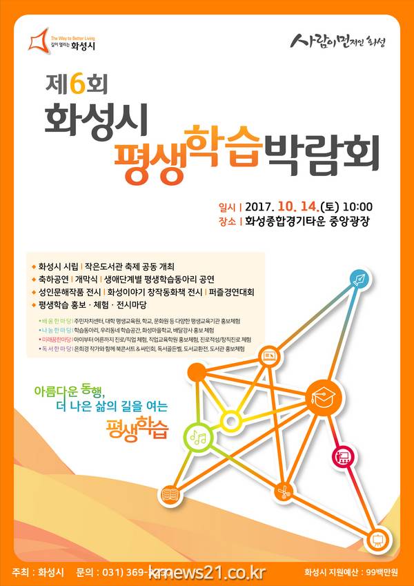 삶의 의미를 찾고 행복지수를 높일 수 있는 평생학습을 가까이에서 만나볼 수 있는 기회가 오는 14일 화성종합경기타운 중앙광장에서 펼쳐진다.