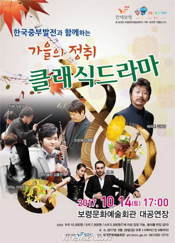 보령시는 시민들에게 깊어가는 가을의 정취를 물씬 느낄 수 있는 기회를 제공하기 위해 오는 14일 오후 5시, 보령문화예술회관 대공연장에서‘클래식 드라마’공연을 개최한다.