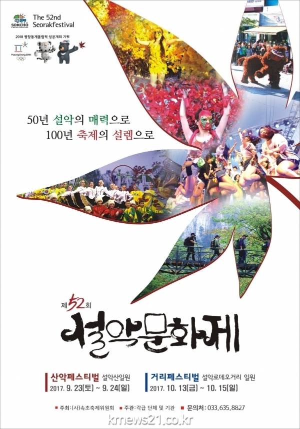 시 관계자는 "절정에 달한 설악산의 단풍과 함께하는 제52회 설악문화제 거리페스티벌 행사를 통해 많은 시민과 관광객이 아름다운 설악의 비경과 설악산의 맑은 공기를 마시며 아름다운 추억으로 기억되는 시간이 될 수 있도록 준비에 만전을 기하겠다"고 전했다.