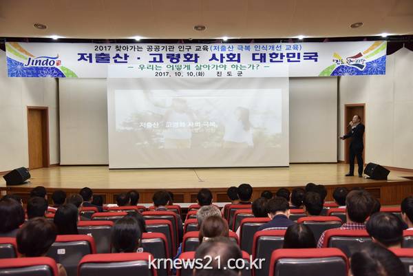 진도군이 지난 10일(화) 전 직원을 대상으로 저출산 극복 인식 개선을 위한 ‘2017 찾아가는 공공기관 인구교육’을 실시했다.