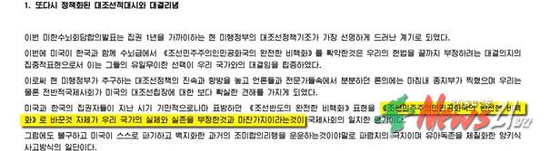 '북한의 완전한 비핵화'를 재확인한 한미 정상회담의 공동 설명문, '팩트시트'에 대해 북한이 나흘 만에 공식 입장