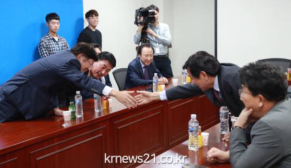 이 의원과 함께 이 모임을 공동주도한 김영우 바른정당 의원도 “지도부에 정식으로 대통합 실무추진단을 구성하자는 안건을 전달하겠다”고 밝혔다.