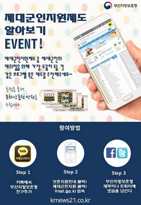 제대군인주간을 맞아 부산보훈청이 페이스북 및 트위터를 통해 제대군인지원제도 알아보기 SNS이벤트를 한다.