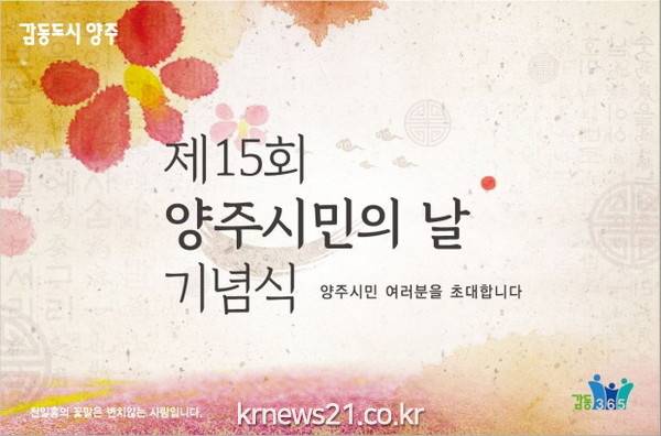시 관계자는 “올해 시민의 날 기념식은 단순 기념식에서 벗어나 모든 시민들이 함께 참여하고 화합하는 경축의 한마당이 될 수 있도록 행사를 진행할 계획”이라며 “이번 기념식에 양주시민의 많은 관심과 참여를 바란다”고 당부했다.