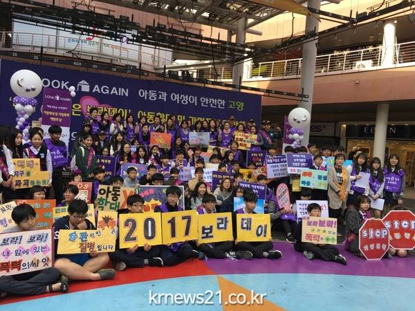 고양시(시장 최성)는 지난 10월 14일 라페스타 일대에서 가정폭력과 아동학대 예방을 위한 ‘보라데이(Look-Again)’ 캠페인을 진행했다.
