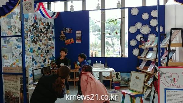 이야기꽃도서관은 사진과 엽서 생활소품 등 프랑스 문화를 알리는 물품 등을 지난 16일부터 전시하고 있다.