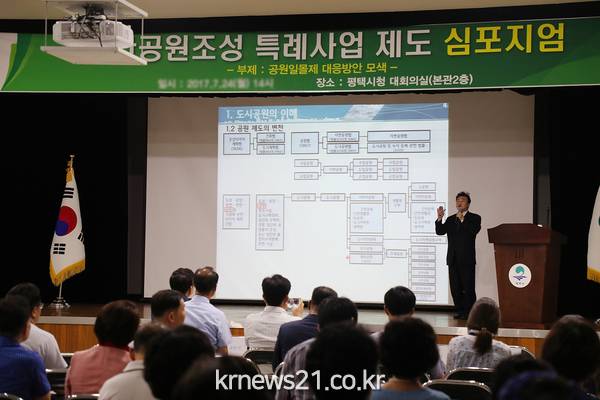 공재광 평택시장은 “일부에서 관 주도의 행정 편의주의라는 오해와 편견을 불식시키고 실질적인 대안 마련을 위해 시민과 전문가 등이 포함된 민․관 거버넌스 협의체를 구성․운영하여 투명성과 공공성을 확보하고, 시민과 함께 공원조성 정책방향을 결정할 계획”이라고 밝혔다.
