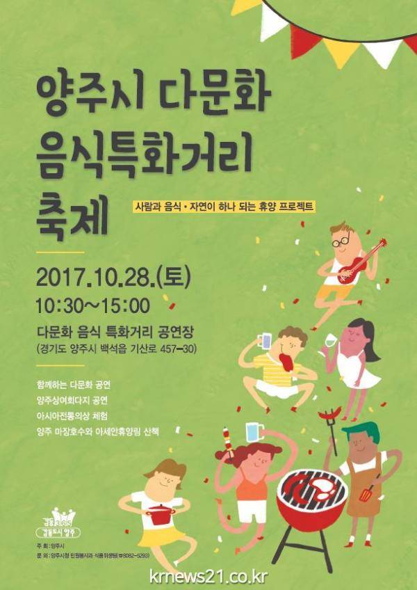 양주시(시장 이성호)는 오는 28일 양주시 백석읍 기산리(기산로 457-30) 일원에서 ‘양주시 다문화 음식 특화거리 축제’를 개최한다.