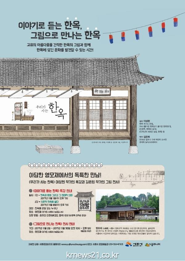 시흥시(시장 김윤식)는 오는 11월, 향토유적 제4호 영모재(시흥시 능골길 26)에서 한옥 특강&전시 <</span>이야기로 듣는 한옥, 그림으로 만나는 한옥>을 개최한다.