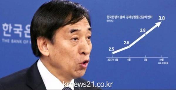 한국은행이 올해 경제성장률 전망치를 기존 2.8%에서 3.0%로 상향했다.